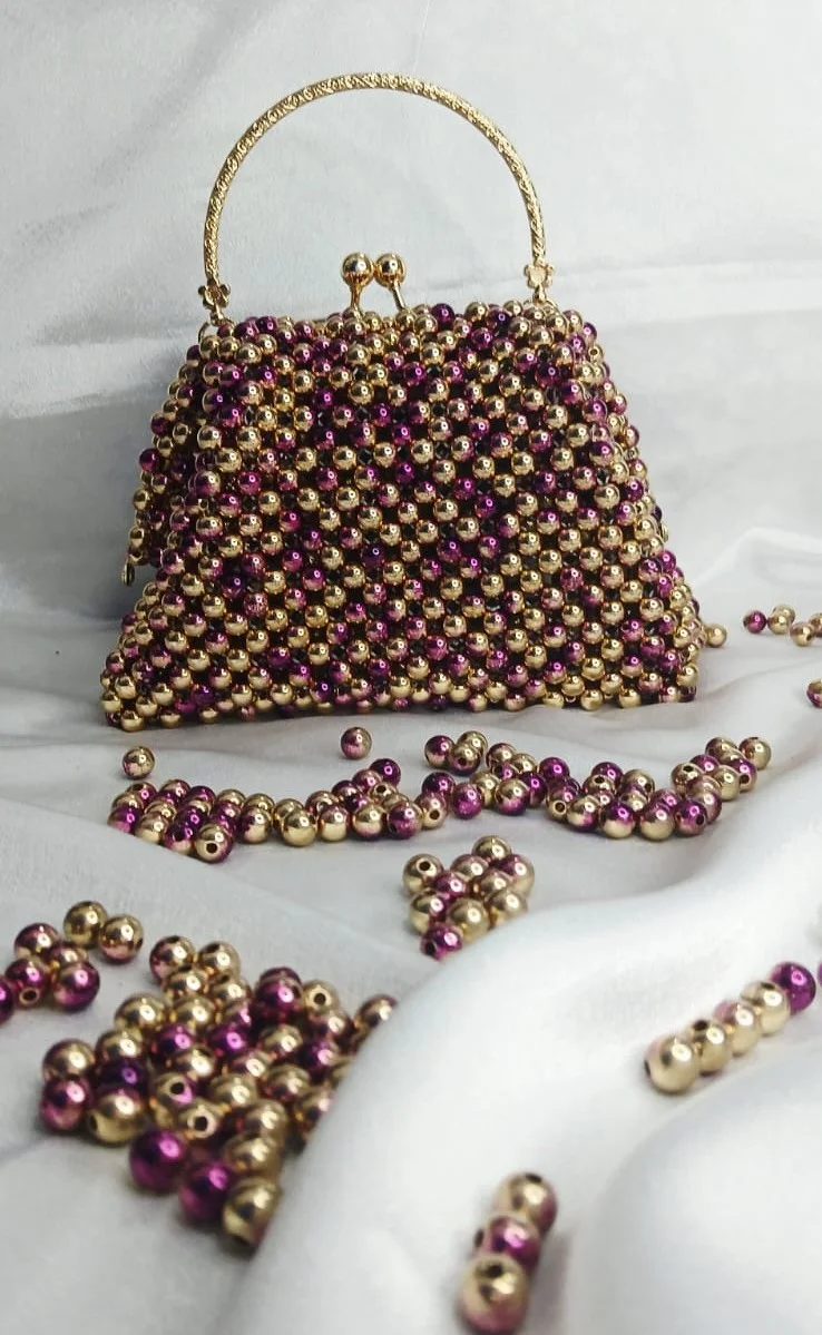 حقيبة "جولدن أميثيست" هي احتفال بالفخامة الصاخبة، حيث يلتقي دفء الذهب مع عمق اللون البنفسجي في تناغم بصري يخطف الأنظار. تتداخل حبات الخرز لتشكل لوحة فسيفسائية متلألئة تعكس الضوء من كل زاوية، لتكون الحقيبة المثالية للمناسبات الكبرى عندما يكون التميز هو العنوان الوحيد.