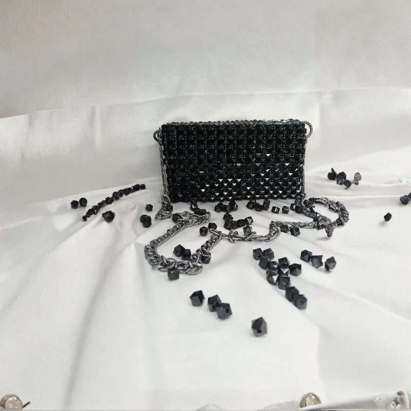 حقيبة أوبسيديان الليل✨ حقيبة تتحدث بلغة القوة، الغموض، وأناقة لا تخفت ✨القصة | The Storyكأنها قطعة مقتطعة من حجر الأوبسيديان البركاني، صيغت بعناية لتجسّد عمق الليل وقوة الظل.هذه الحقيبة صُنعت يدويًا من خرز مضلّع دايموند كت، كل خرزة تعكس الضوء بحدة راقية، فتمنح سطح الحقيبة بريقًا خافتًا يزداد جمالًا مع الحركة. هي ليست مجرد حقيبة، بل حضور… صامت، واثق، وآسر.لماذا ستعشقينها؟ 🖤✨