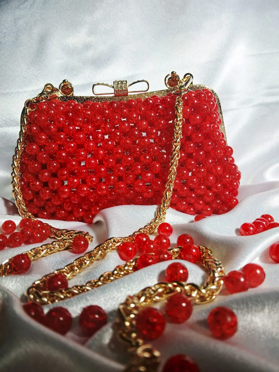 قطعة استثنائية لا تتوفر بكميات كبيرة. دقة التفاصيل في القفل وتناغم الخرز الأحمر يعكسان حرفية مغربية لا تُضاهى. امتلاكك لهذه الحقيبة هو استثمار في أناقتك، وضمان لامتلاك قطعة نادرة تلفت انتباه الجميع في القاعة.