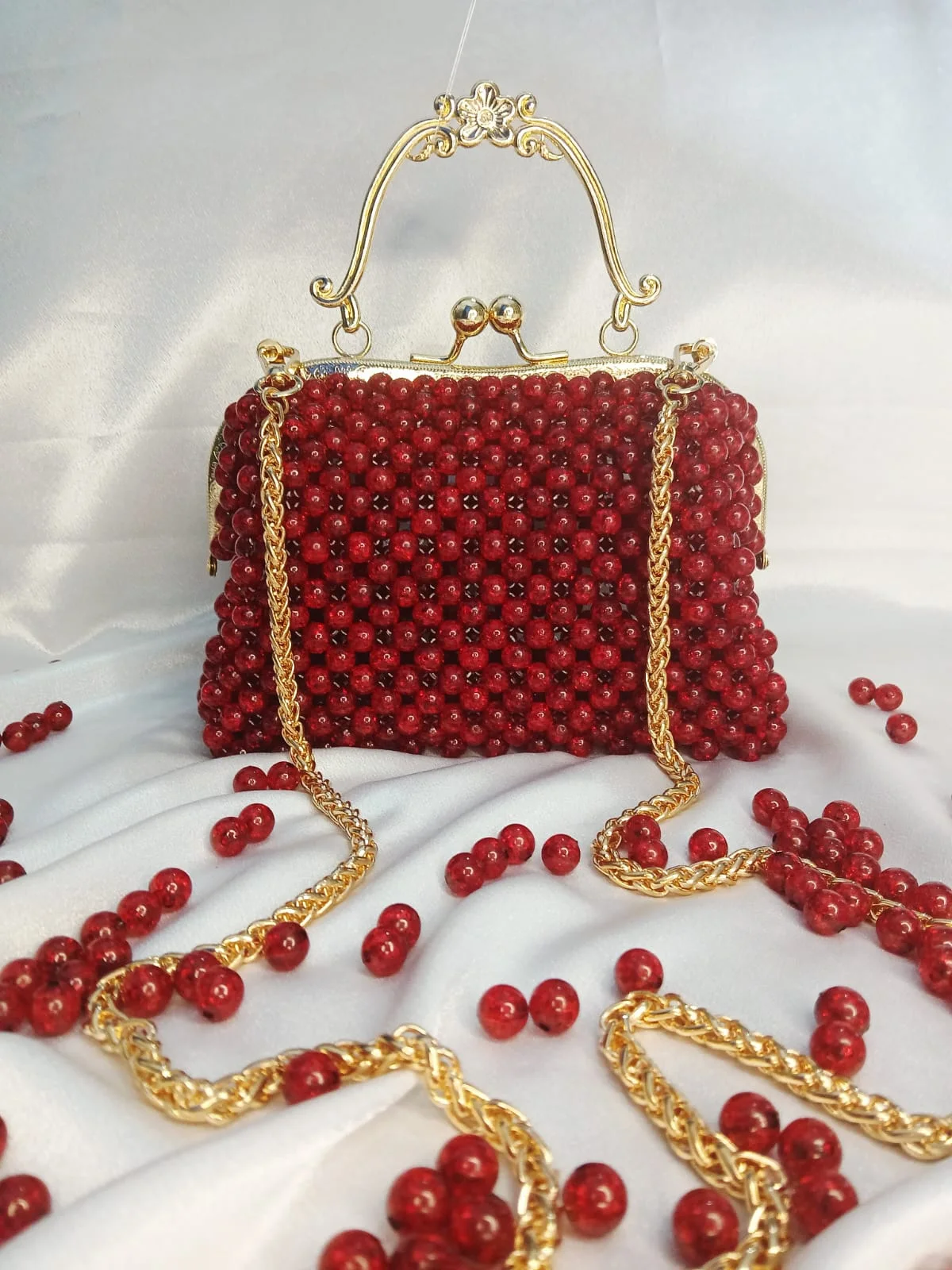 هذا النوع من الخرز (الأحمر المثلج) يعتبر نادراً مقارنة بالأحمر العادي. إنه يعطي الحقيبة مظهراً "فرش" (Fresh) وحيوياً. اقتناؤكِ لها هو تجديد لخزانتكِ بقطعة كلاسيكية بلمسة عصرية مبتكرة.
